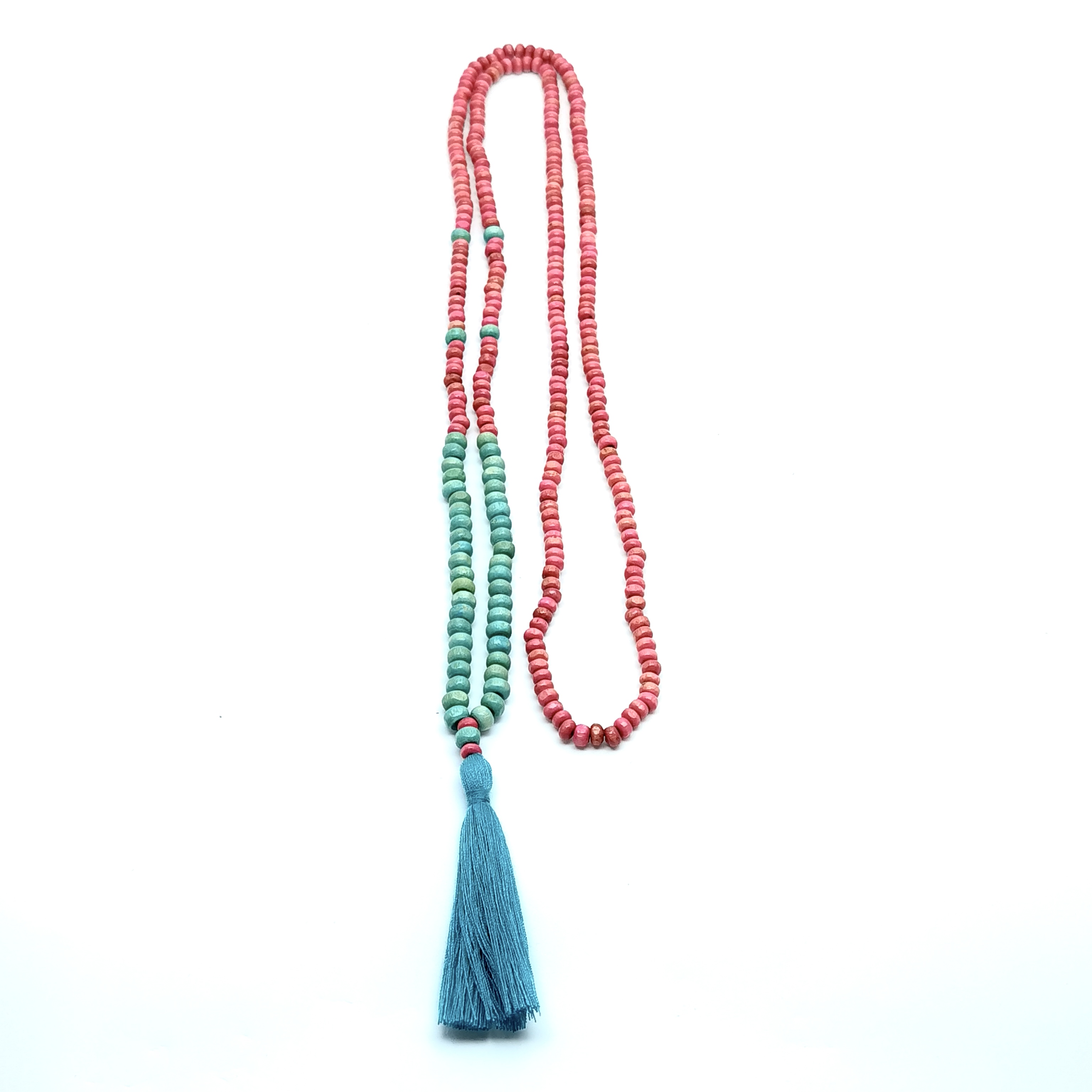 Ahşap boncuklar kullanılmıştır. El yapımıdır.